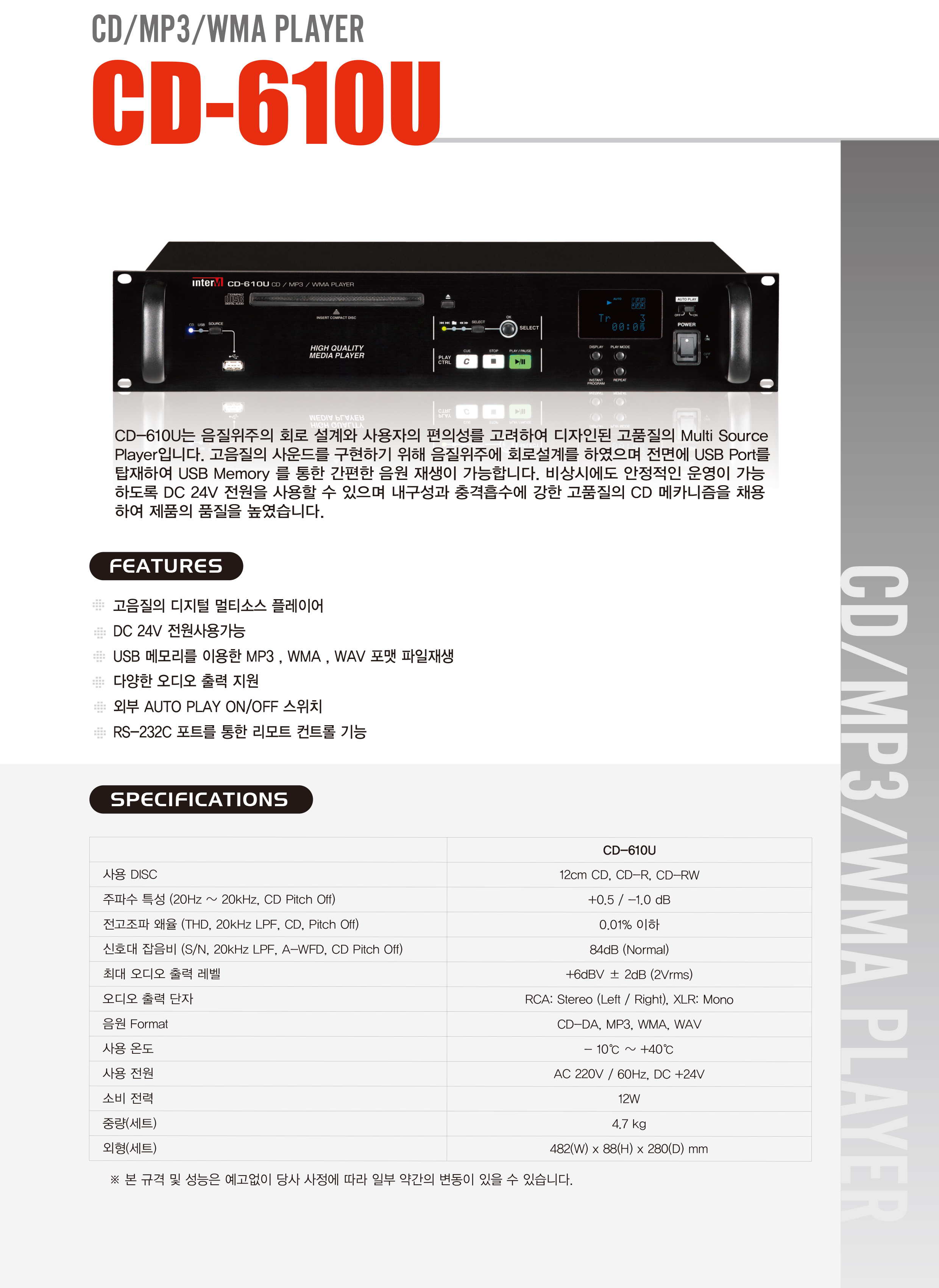 CD-610U(CD,MP3,WMA Player) > PA 시스템