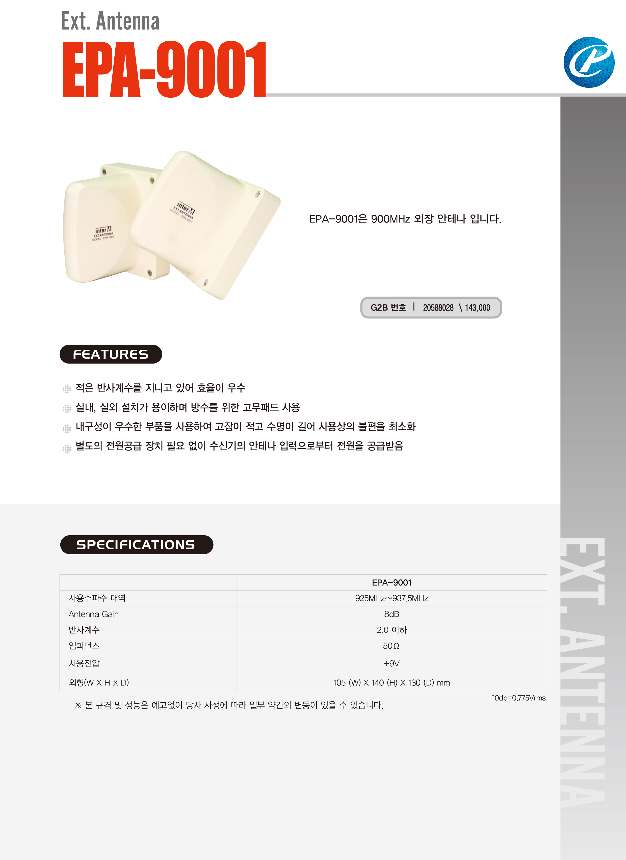 - 925MHz~937.5MHz 주파수 대역에 적합합니다.