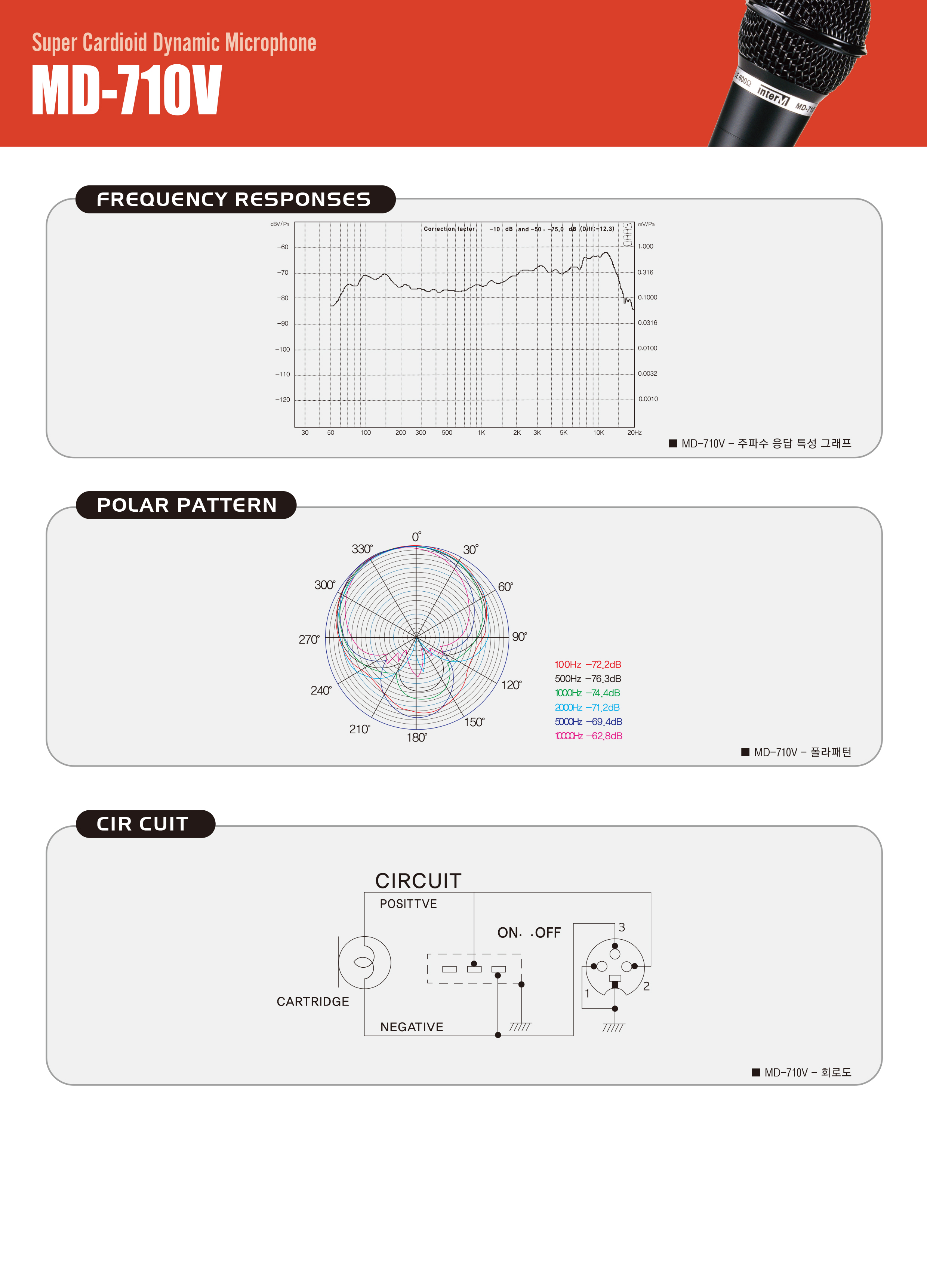 - 단일지향성 DYNAMIC형으로 주파수 특성이 우수하여 음성 및 악기음 재생 특성이 우수