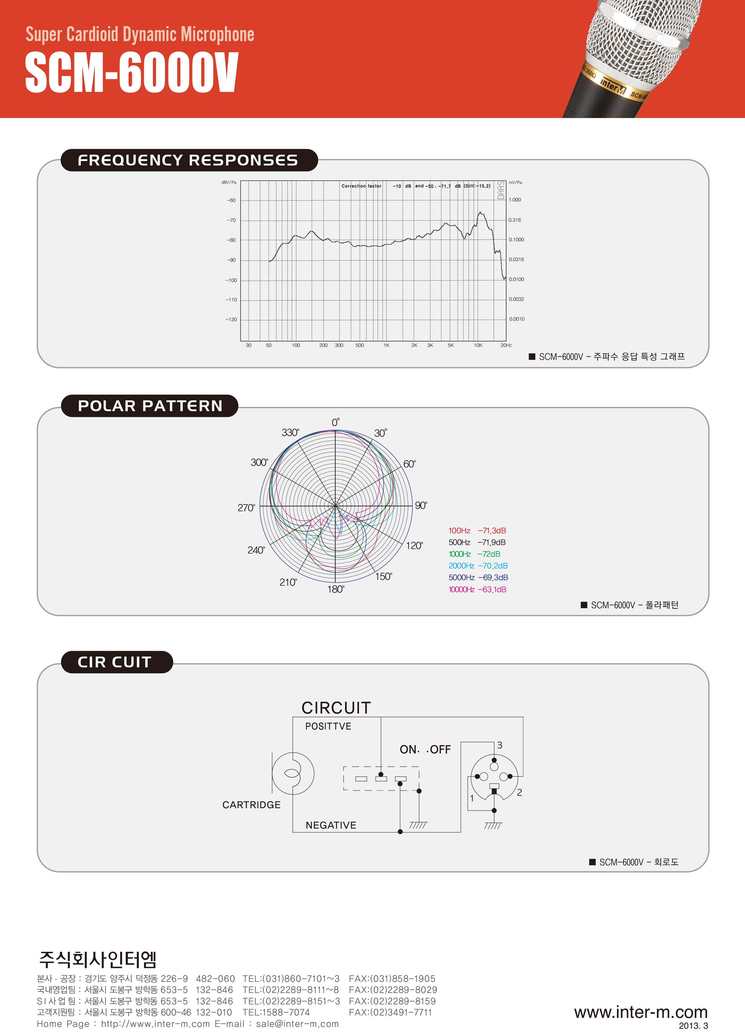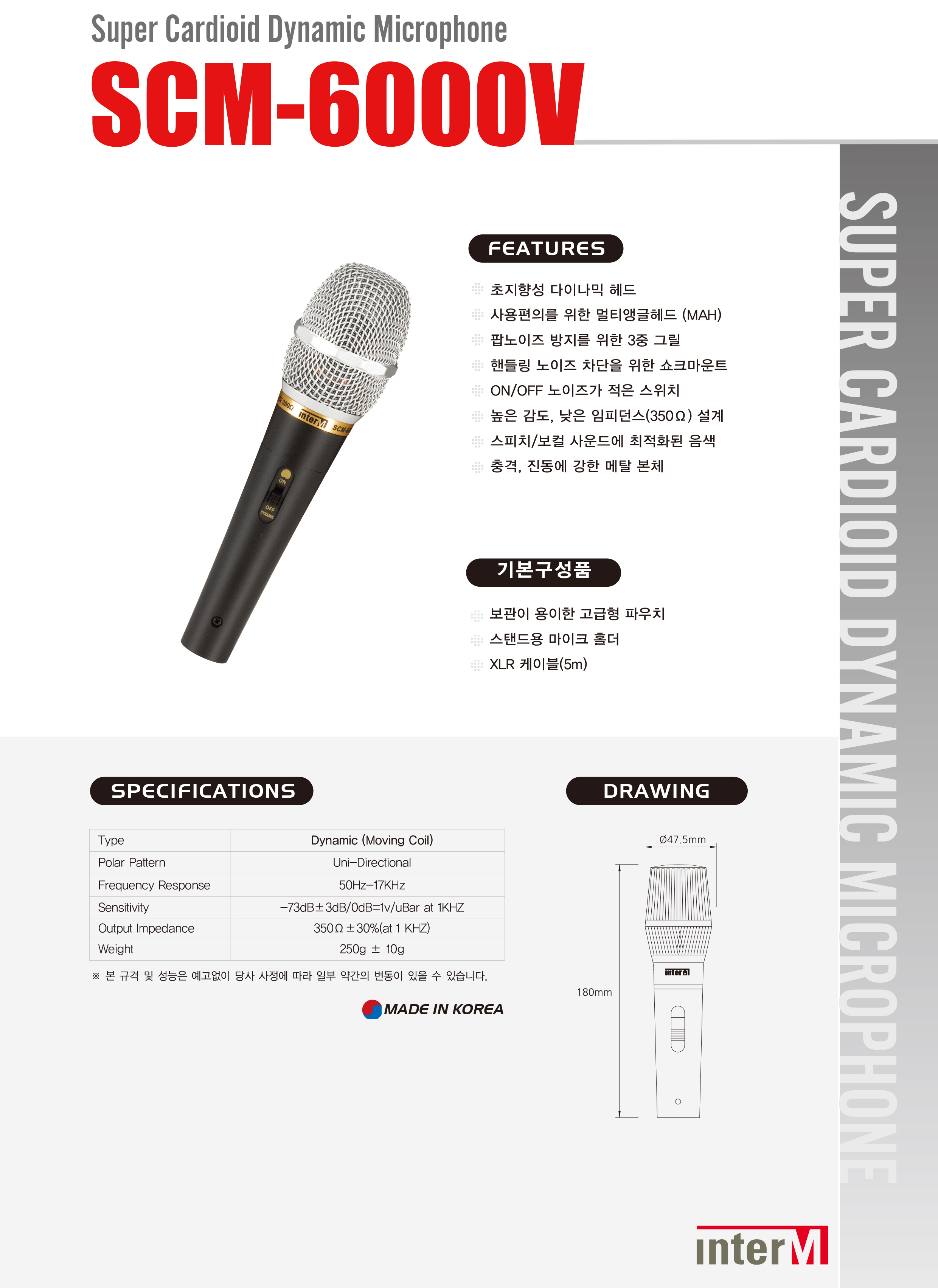 - 단일지향성 DYNAMIC형으로 주파수 특성이 우수하여 음성 및 악기음 재생 특성이 우수