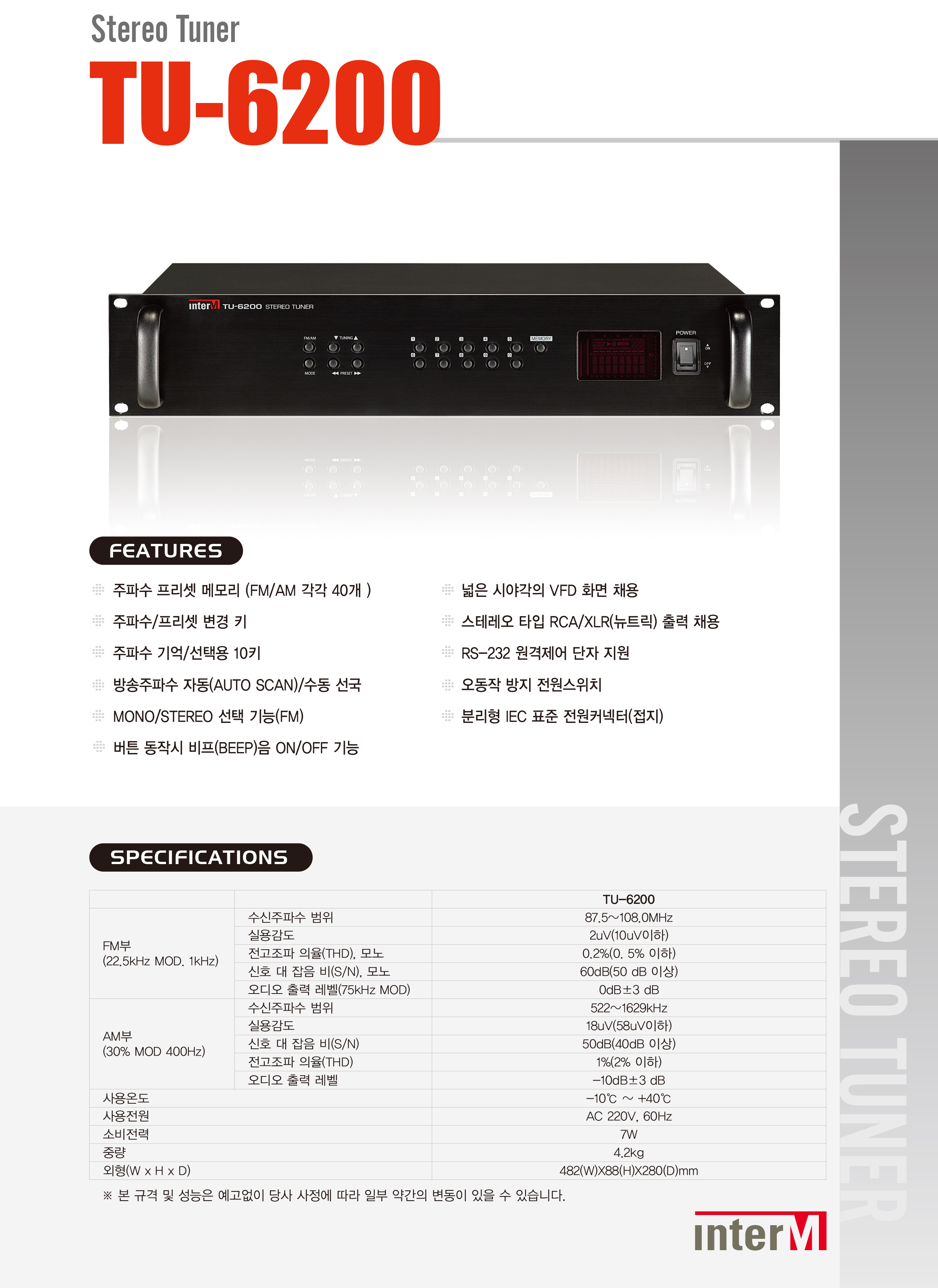 - FM / AM 40개의 방송 주파수 메모리 기능